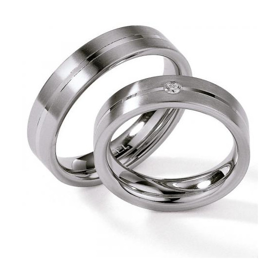 Prachtige trouwringen, gemaakt van roestvrij staal ook wel edeltaal genoemd. Deze trouwringen komen uit de White Style Collection van Collectie Ruesch. De trouwring heeft 1 briljant (totaal 0,045 ct.).