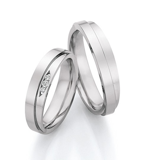 2 paar stalen trouwringen met diamant