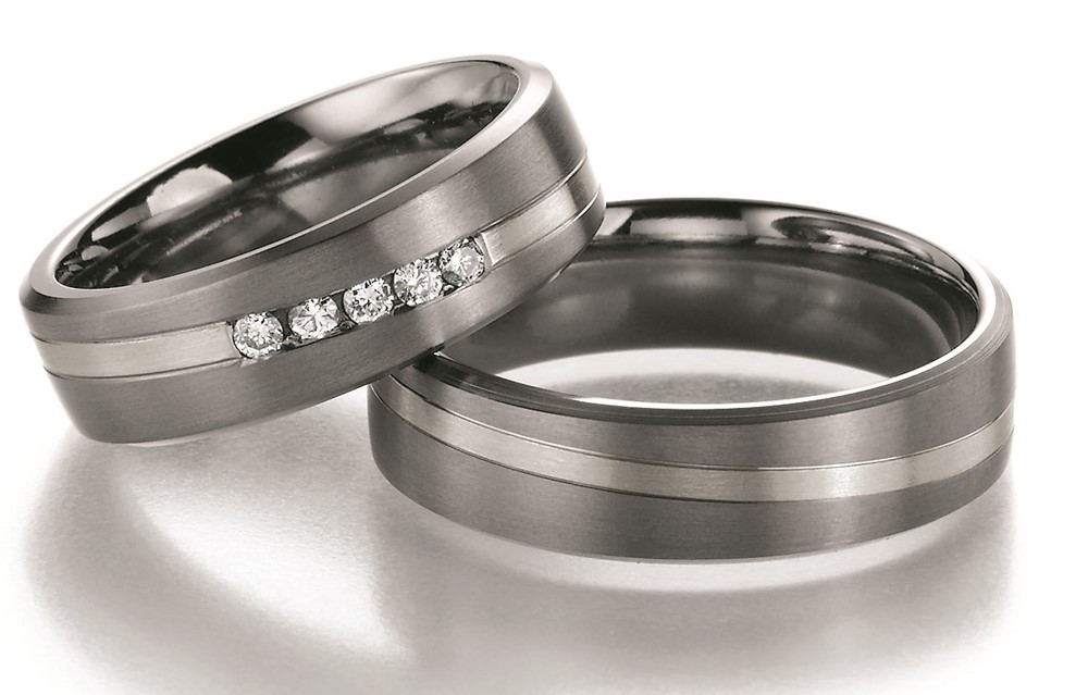 Set trouwringen gemaakt van titanium met 14 karaats echt goud plaat combinatie, dus twee materialen verwerkt in één ring. Damesring is inclusief diamant en herenring is zonder steen.De ringen worden door de Weense trouwringfabrikant Nowotny in Oostenrijk sinds 1881 geproduceerd met hoogwaardige kwaliteit en vakmanschap.