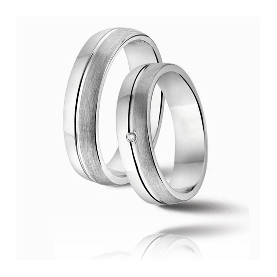 Standaard wordt de damesring met diamant geleverd en de herenring zonder steen.